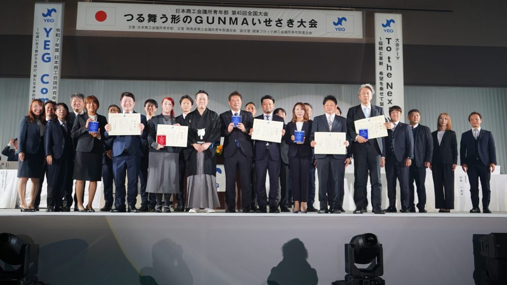 日本商工会議所青年部(YEG)第45回全国大会 「つる舞う形のGUNMAいせさき大会」で4つの部門と、MsYEGアワードに選出された以下の単会並びにMsYEGアワード女性活躍賞より選ばれたグランプリを発表しました。
